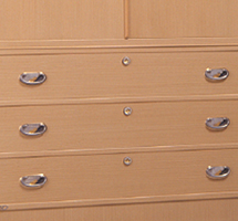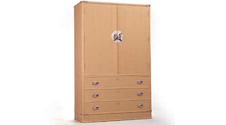 桐の高防湿性、高耐火性を生かし、丹念に仕上げられた桐箪笥は、その白木地の木目の美しさと柔らかい色調から、生活空間に優雅さと安らぎをもたらします。