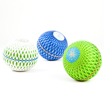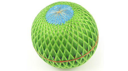 手まりは、丸めた毛羽(けば)を糸できつく巻いて球形にしたもので、女児の玩具として親しまれてきました。野州てんまりは、本県にゆかりのある花木や野草などを題材としてつくられています。