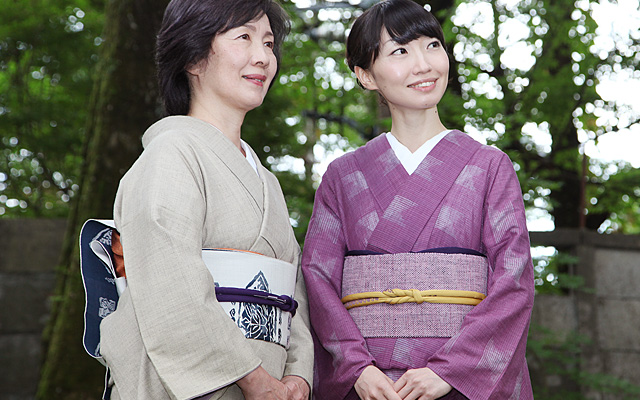 真綿から指先でつむぎ出す糸を織った結城紬は、軽く、温かく着心地が良い。最高級絹織物の結城紬を、ぜひお楽しみください。